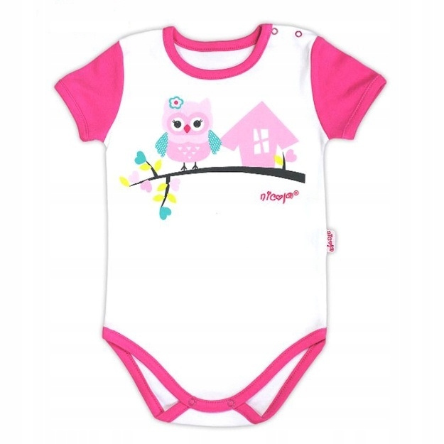 Bawełniane body z krótkim rękawkiem, zapinane w kroku i na ramieniu.
